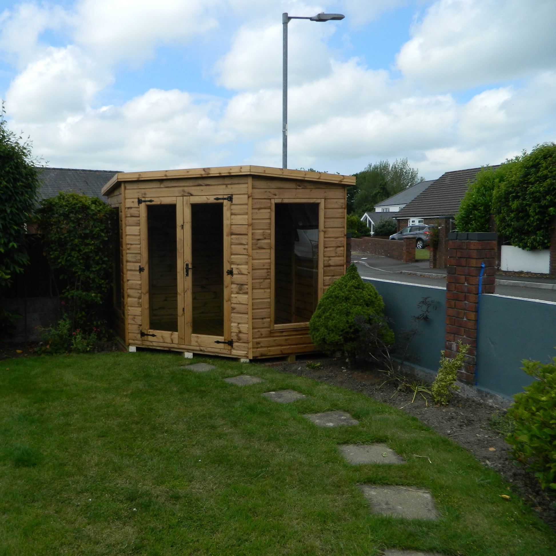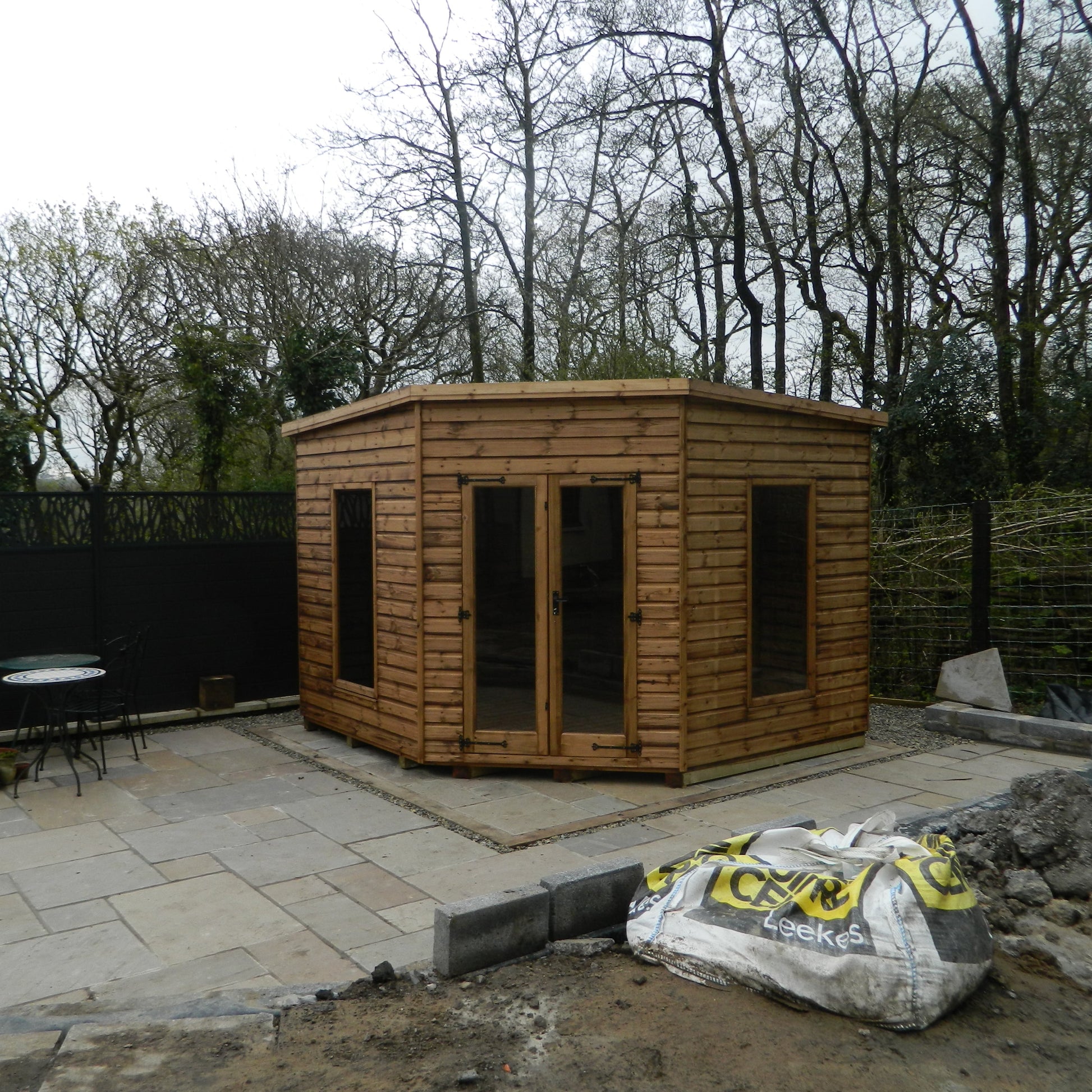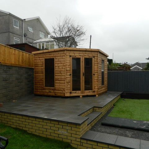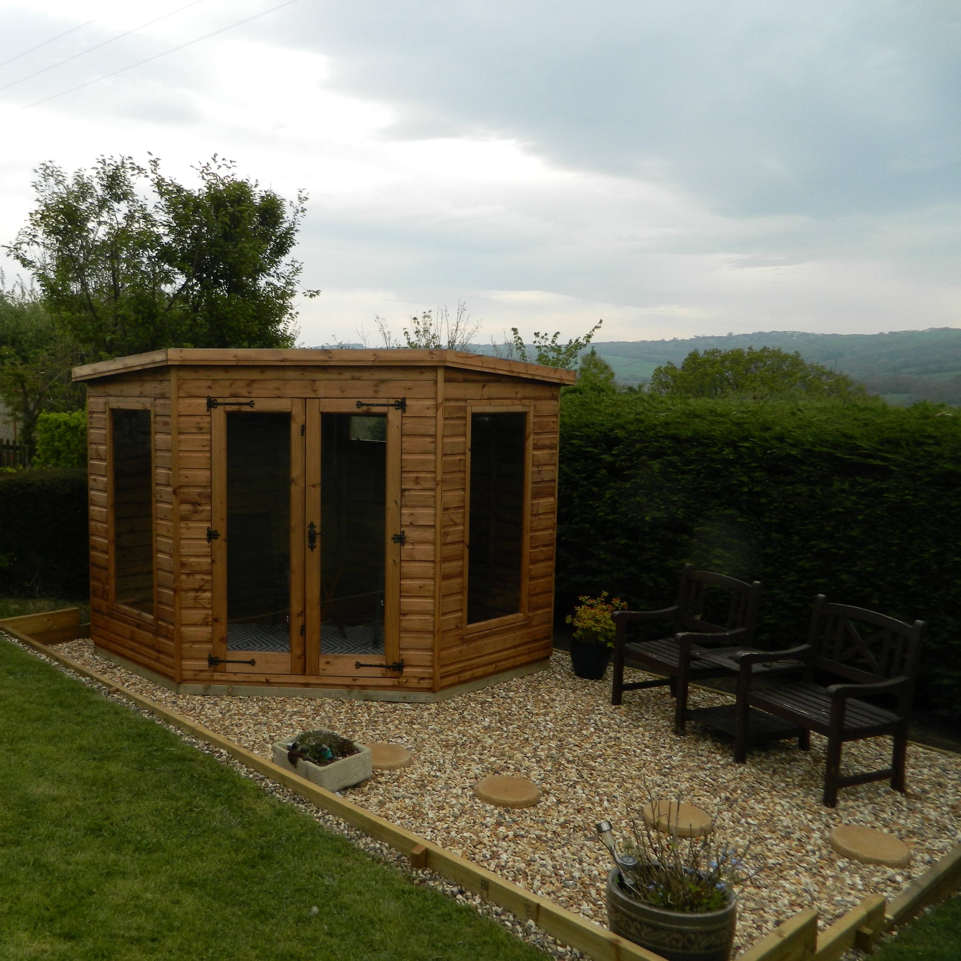 Enjoy the luxury of your own private corner in your garden with this sophisticated corner summerhouse. This space-saving garden building will provide a cosy, protected area for you to relax and take in the beauty of nature. It is a perfect choice for those who want to make the most of wasted corner space.